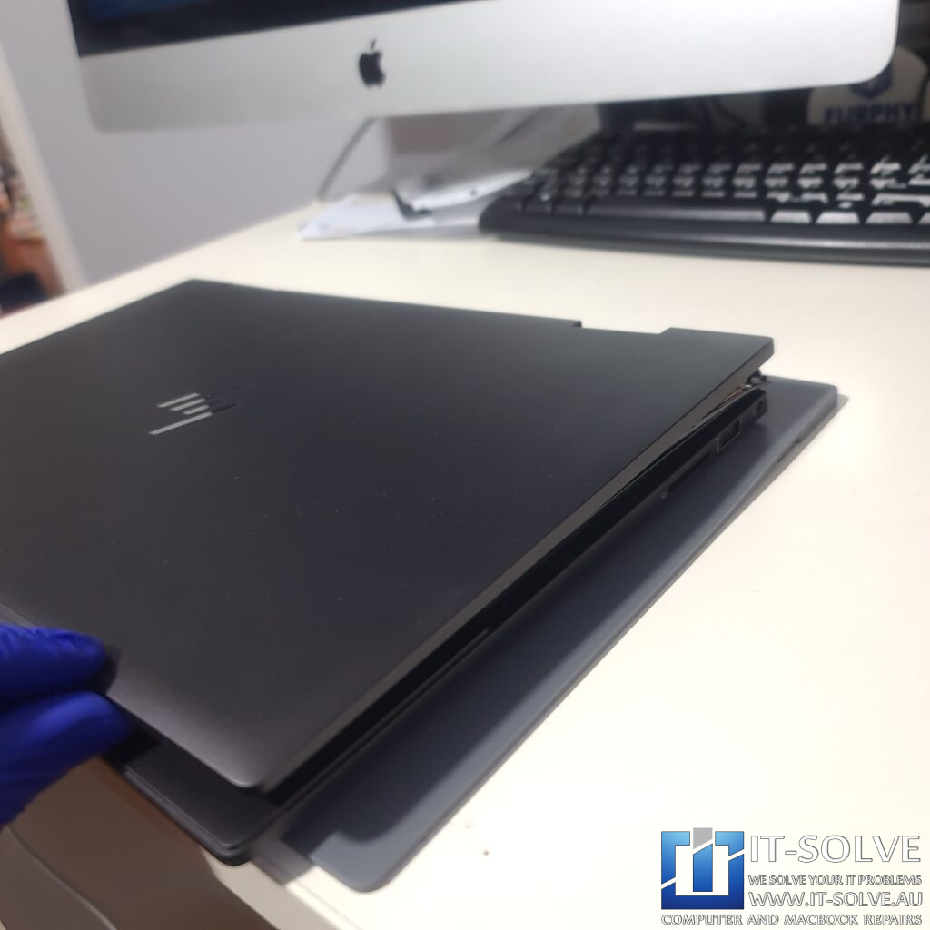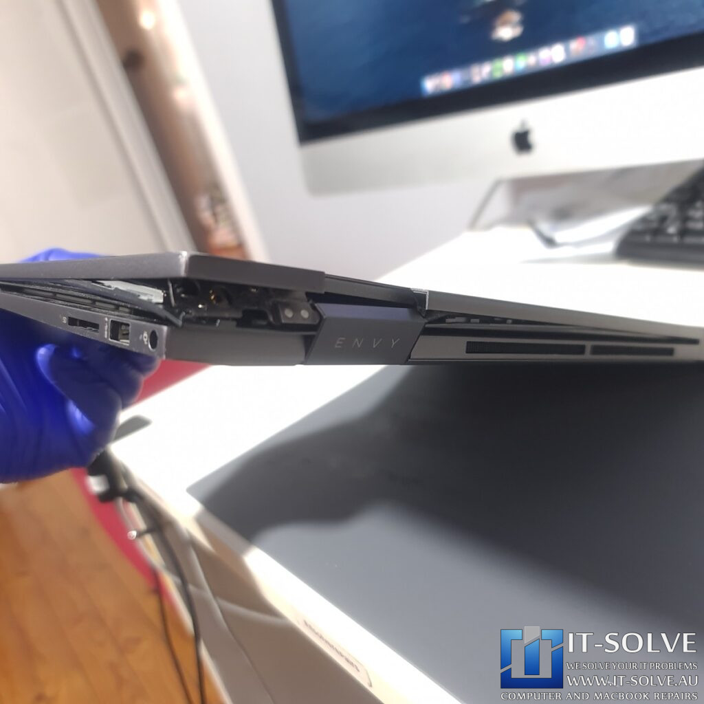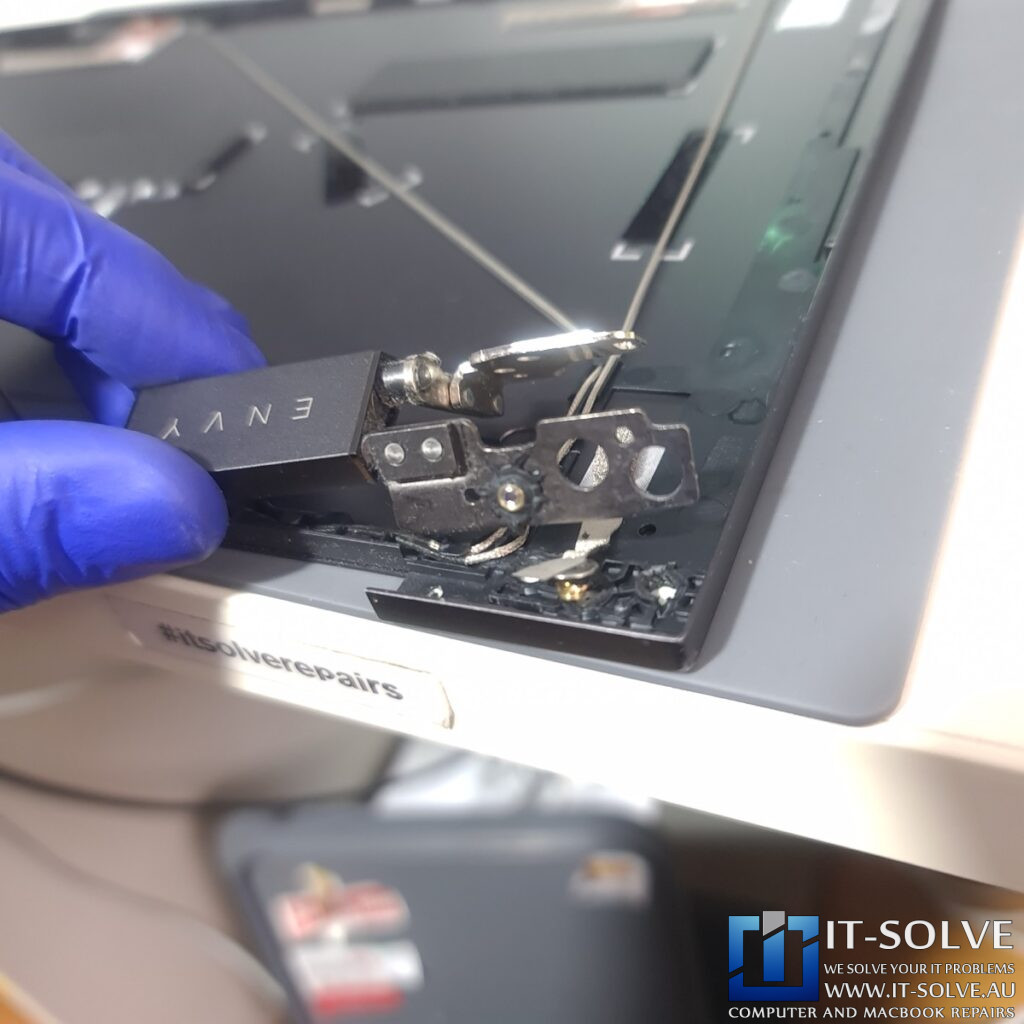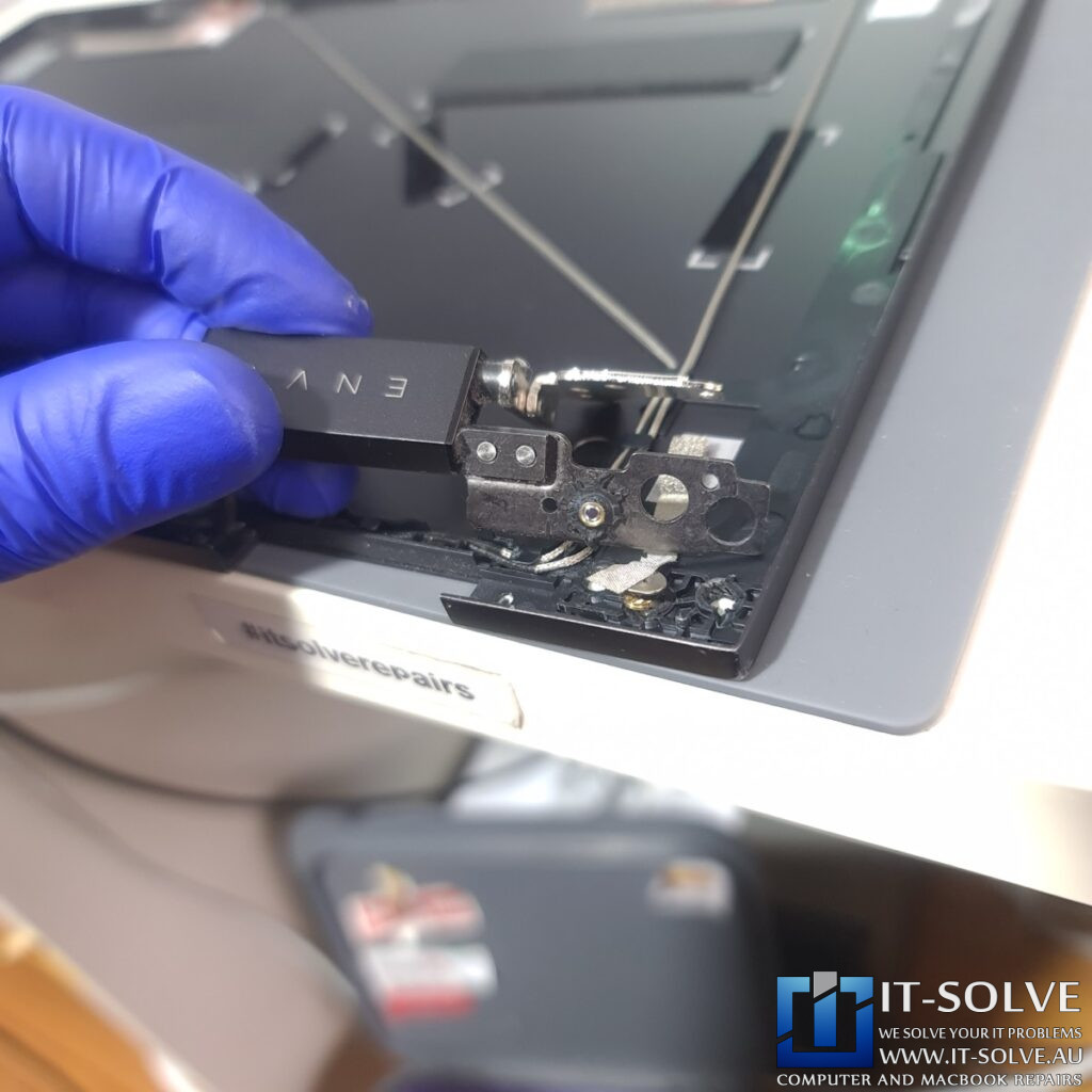This week at our Adelaide workshop, we encountered a very common structural failure on an HP Envy laptop. The right hinge had completely separated from the back cover, making it impossible to open or close the lid without risking a cracked screen.