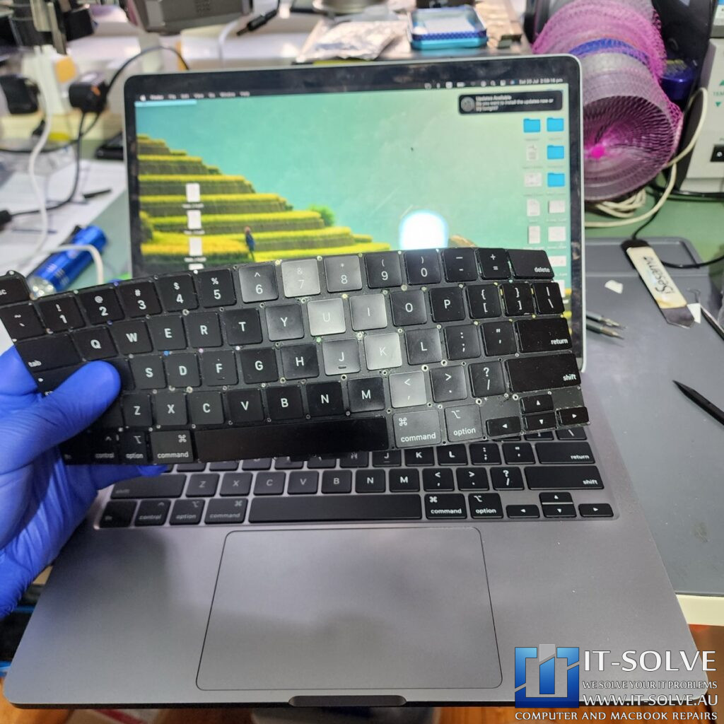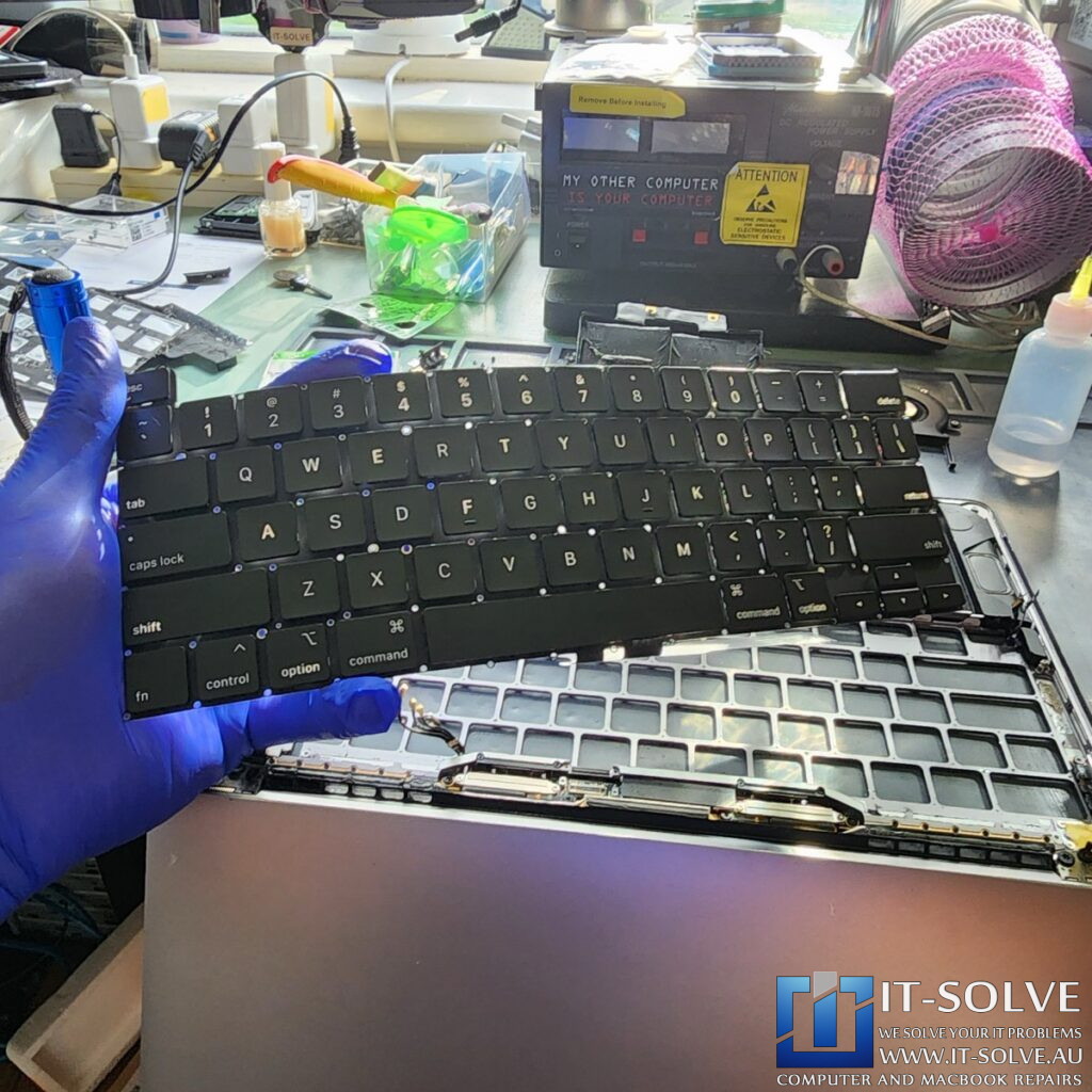 This week at our Adelaide workshop, we successfully repaired an M1 MacBook Pro that suffered from non-functional keys after a minor liquid spill. Consequently, because these keyboards utilize a capsulated system, we cannot repair individual keys that stop typing. Therefore, we performed a full MacBook Pro A2337 Keyboard Replacement to restore the device to perfect working order.